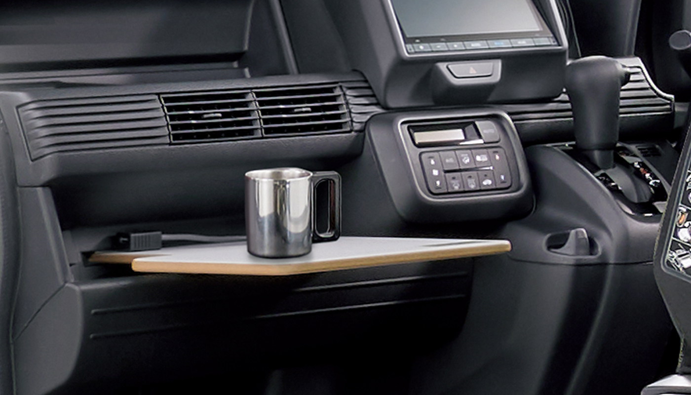 - ※走行中、またはテーブルを使用しないとき、または助手席を倒すときは、テーブルを取り外してください。