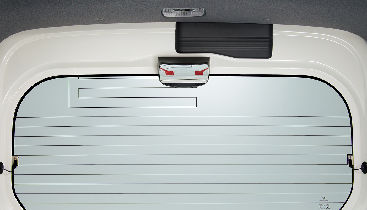 車庫入れや駐車の際の、後方視界の確認に。鏡面に汚れがつきにくい室内取り付けタイプです。