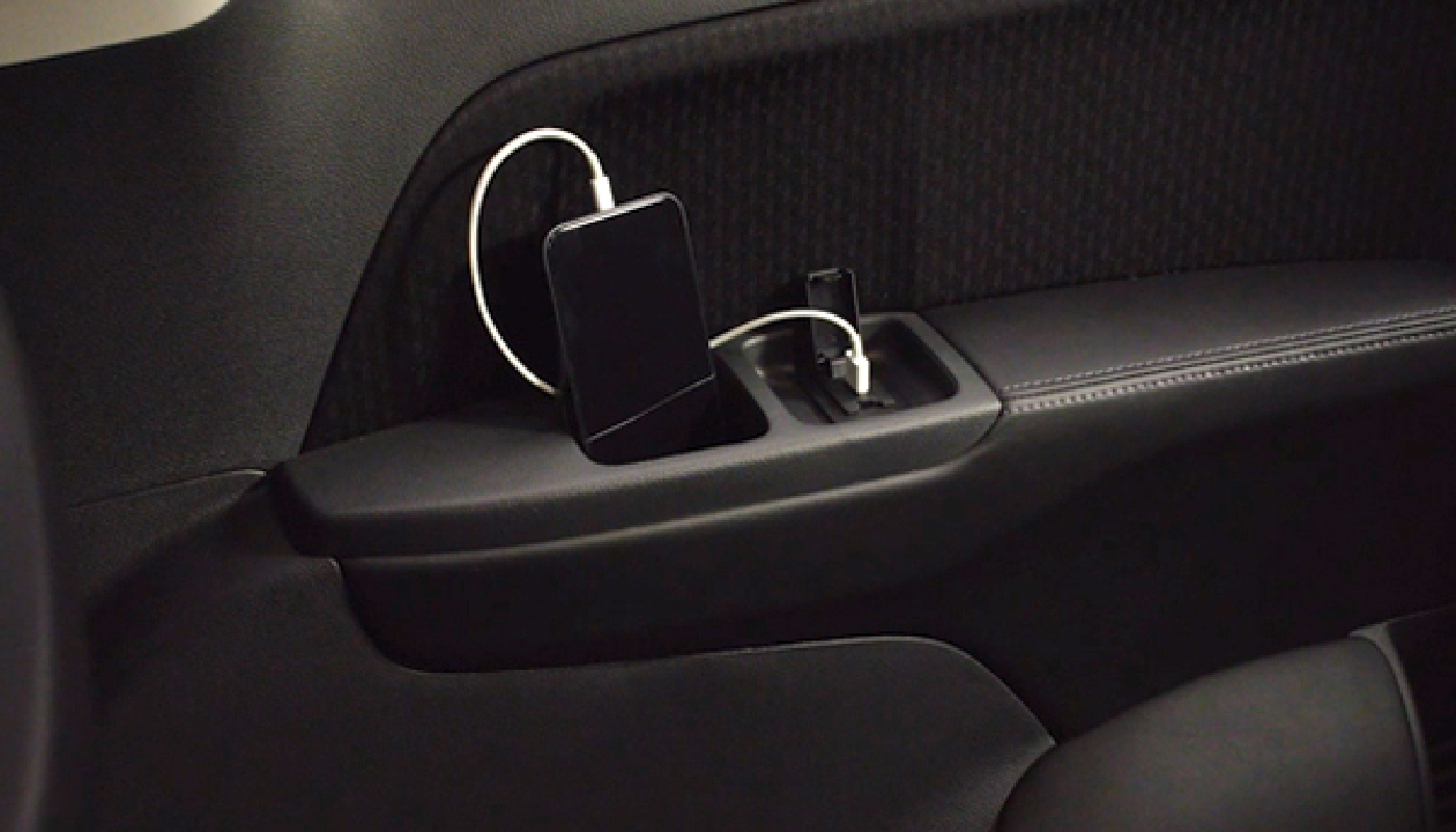 インパネアッパーボックスにスマートフォンを収納しながら充電できます。急速充電対応機器の急速充電も可能です。