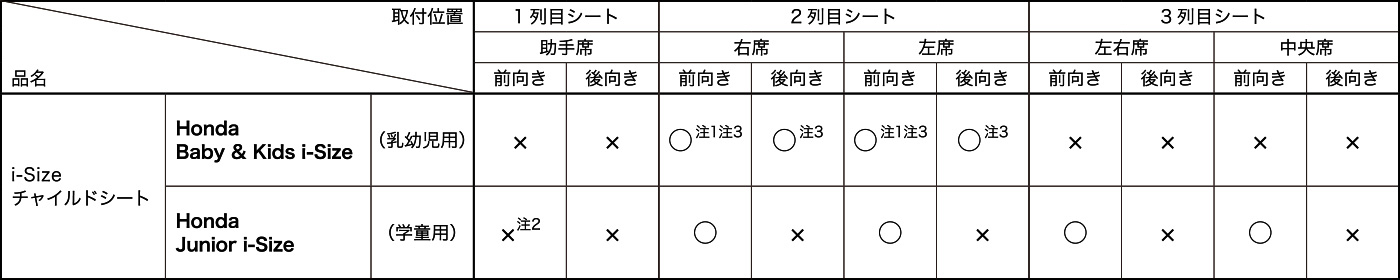 - ※取り付けるチャイルドシートの位置およびお子様の体格により、取付方法が異なりますので、詳しくは販売会社にご相談ください。