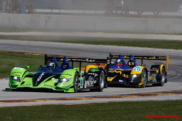 アメリカン・ルマン・シリーズ(ALMS)第7戦ジェネラック500が8月9日(土)にロードアメリカで開催され、#9 パトロン・ハイクロフト・アキュラ(パトロン・ハイクロフト・レーシング)を駆るデイビッド・ブラバム/スコット・シャープ組が、LMP2クラスで今季3度目の優勝を飾った。