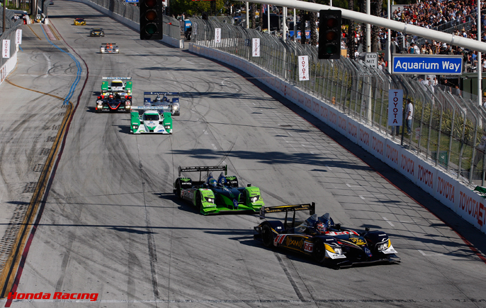 アメリカン・ルマン・シリーズ(ALMS)第3戦が18日(土)にカリフォルニア州ロングビーチの市街地コースで開催され、#66 ド・フェランXMサテライト・ラジオ・アキュラを駆るジル・ド・フェラン/サイモン・ペジノ組(ド・フェラン・モータースポーツ)が、2位の#9 パトロン・ハイクロフト・アキュラを駆るデイビッド・ブラバム/スコット・シャープ組(パトロン・ハイクロフト・レーシング)に1秒以上の差をつけ、シリーズ初勝利を総合優勝とLMP1クラス優勝で飾った。