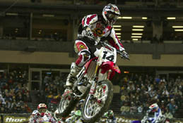 CRF450Rに乗るウインダムはラロッコやハフマンほどついていなかった。スーパークロスに出場するのは2002年2月23日以来というウインダムは、一時は5位につけていたが、その後、腕があがってしまったため後退し、9位に終わった。10位には最後尾の20位から必死で追い上げたフォンセカが入ったのである。
