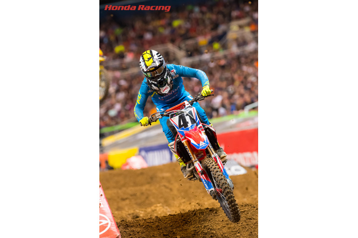土曜日のレースイベントに先立ち、Team Honda HRCのカナードは、ボーグル、RJ・ハンプシャー、マルコム・スチュワートとともに、毎年恒例になっているビッグセントチャールズ・モータースポーツで行われた販売店主催のスーパークロス・パーティに参加。サイン会を行うなどファンとの交流を図りました。