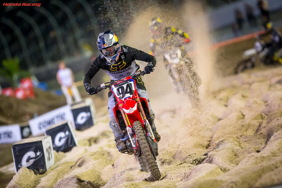 MONSTER ENERGY AMA SUPERCROSS/FIM世界選手権第10戦が、デイトナ・インターナショナル・スピードウェイで行われました。スーパークロス発祥の地として特別なステータスを誇る当地では、昨年ジャスティン・ブレイトン(Smartop Bullfrog Spas Honda)が達成した優勝や、一昨年のジェレミー・マーティン(Geico Honda)による2位入賞など、CRF450Rが目覚ましい結果を残してきました。