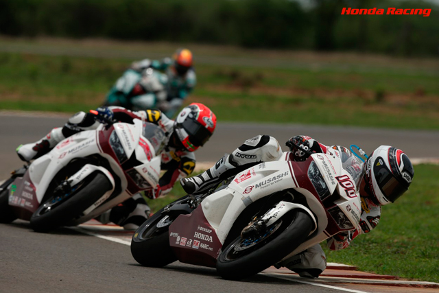 次戦のインドネシア大会でも、アズランは優勝/2位として好調をキープ。すると、第3戦インド大会では、レース1でアズランと玉田がチームメート同士によるデッドヒートを展開します。最終ラップまでリードしていたアズランを、最後の最後で玉田がかわしてARRC初勝利を手にしました。レース2でも2人はトップ争いを演じますが、10周目にトップを走っていた玉田が転倒し、ここで赤旗が振られてレースは終了。9周目の通過順位をもとに順位が決定し、玉田はダブルウインを果たしました。