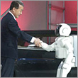 - 4月18日(日)、ASIMOは、ドイツで行われた「ハノーバー産業展示会」のオープニングセレモニーに出席しました。ASIMOは、ドイツのシュレーダー首相と握手をし、首相はじめ、参加者の方々を歓迎しました。