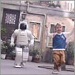 2006年1月1日より、オンエアされる新型ASIMOのテレビCM。新型ASIMOは、人と同じ空間で共存するために必要な、環境適応能力や作業能力が向上したほか、走行機能に代表される運動性能も大きく進化しました。とはいえ、まだまだ「5才」のASIMOは成長途中といったところ。Hondaは今後も、新しい価値の創造を目指し、ASIMOと共に未来へ向かって走り続けます。 Hondaを支える夢の力、「The Power of Dreams 」を皆様に伝えたい。 こうした願いから今回のCMは生まれました。CMの舞台は「南イタリアの田舎町にある広場」という設定ですが、実際の撮影場所はなんと横浜。 スタジオに大規模なセットを組み立て、二日間にわたり撮影しました。 新型ASIMOの晴れ舞台だけに、現場は1ミリのミスも許されない固い緊張感に包まれましたが、ASIMOと子供たちが一生懸命がんばってくれたおかげで、明るく楽しいCMが出来上がりました。