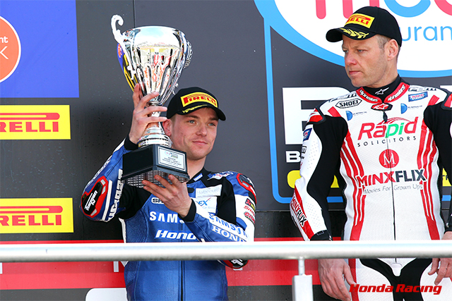 英国スーパーバイク選手権(BSB)第1戦の決勝が、4月7日、ブランズハッチのインディ・サーキット(ショートコース)で開催されました。今年のSamsung Hondaは、若手のアレックス・ロウズと、ベテランの清成龍一のコンビでシーズンを戦います。ロウズは昨年、プライベートチームのTeam WFRでBSB初優勝を達成するなど、大きな成長を遂げて総合4位の成績を残し、今年はSamsung Hondaに抜てきされました。過去3度のBSBタイトルを獲得している清成は、昨年アジアロードレース選手権にスイッチし、スーパースポーツ600ccクラスでチャンピオンを獲得。今季は2年ぶりにBSBに復帰しました。