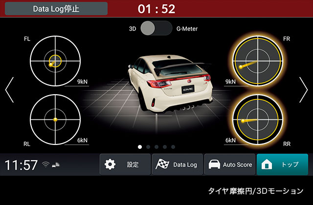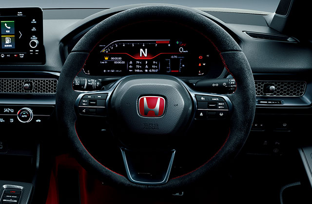 TYPE R専用データロガーアプリ「Honda LogR」を車載ナビに標準装備。走行データの保存に加えて、データを自動解析しスコア化する革新的な機能を採用し、日常シーンからTYPE Rと対話しながら質の高い運転・挙動を目指すことができる。また、自動ラップタイム計測を備えた本格的なサーキット走行データ解析機能も搭載する。さらに、国内13か所のJAF/FIA公認サーキットでスピードリミッターを解除可能。