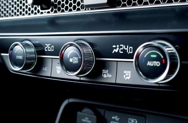 運転席/助手席、それぞれで温度設定が可能。ローレット加飾を施したダイヤルなど、デザインにもこだわっている。