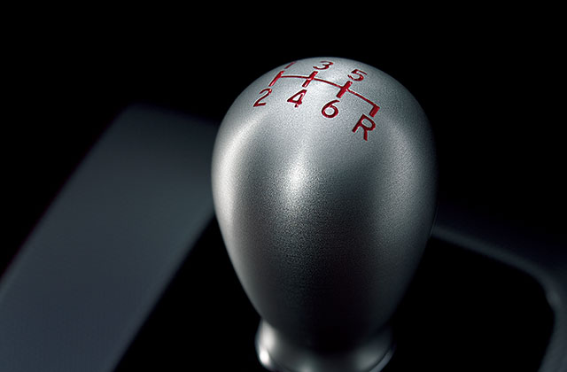 正確なシフト操作を叶えるアルミ削り出しのティアドロップ形シフトノブ。高剛性6速マニュアルトランスミッションはTYPE R専用リンク機構により、ダイレクトで滑らかなシフトフィールを実現。