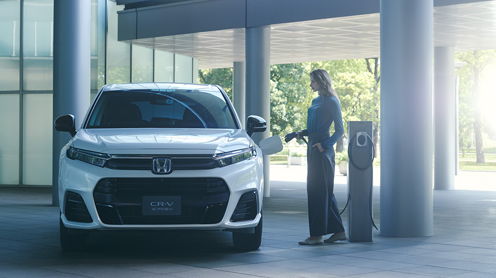 水素を充填して走るFCEV(燃料電池自動車)に、手軽にあつかえるAC充電機能をプラスしたSUV。それが、CR-V e:FCEVです。目的に合わせた最適なエネルギーの使い方を実現したクルマです。
