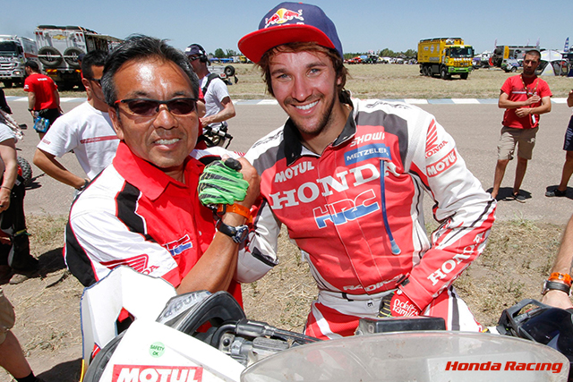 また、全員が新型のCRF450 RALLYに乗り、ブラジル・ホンダ、アルゼンチン・ホンダからエントリーしているライダーたちも、前日に引き続き順調な走りを続け、第2ステージを終えた段階で、ジェアン・アゼヴェド選手(ホンダレーシング・ブラジル・ラリーチーム)が総合24位、ライア・サンツ選手(アルゼンチン・ホンダ・ラリーチーム)が総合27位、パブロ・ロドリゲス選手(アルゼンチン・ホンダ・ラリーチーム)が総合30位と、上位30位以内をキープしています。