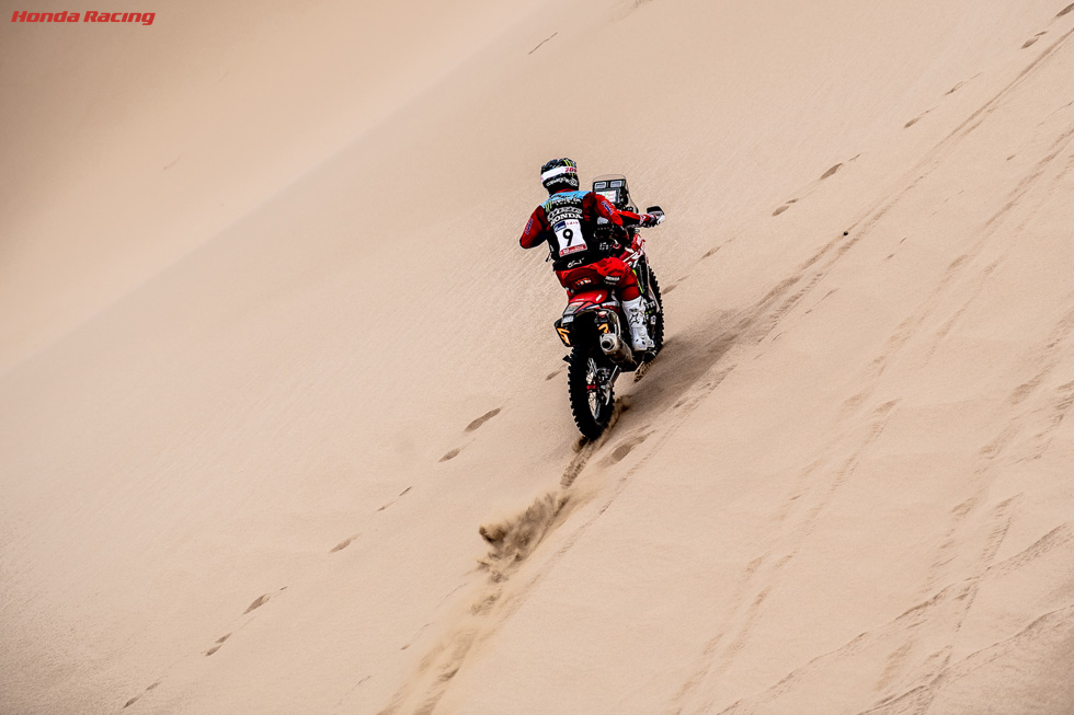 シルクウェイラリーは第8ステージを迎え、中国での戦いが始まりました。Monster Energy Honda Teamは、硬い路面や砂丘など、多彩な種類のコースが入り交じったステージを粘り強く戦いました。