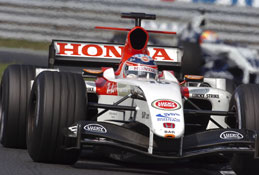 48周目。佐藤が最後のピット作業を終えて、7番手でコースに復帰した。バトンもその次のラップでピットイン。ほぼ全車が3回目のピット作業を済ませコースに戻った52周目、バトン、佐藤は5、6番手をキープしていた。佐藤の背後からは、ウィリアムズのA・ピッツォニアがコンマ9秒差で迫る。しかし、佐藤は最後まで抑え切り、そのままチェッカー。バトンも5番手でレースを終え、B・A・R Hondaの2台は前戦ドイツGPに続き、今季4回目のダブル入賞を果たした。優勝はM・シューマッハ(フェラーリ)。フェラーリは、この勝利で今季のコンストラクターズ選手権タイトルを獲得した。 |