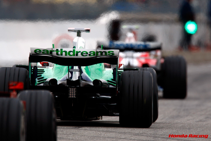 午後2時の時点で、気温24℃、路面温度は29℃。強い南西の風が、たえず雲を運ぶ。開始20分前に雨がパラついたものの、予選セッションはドライコンディションで始まった。第1セッションの1回目のアタックでは、バトン9番手、バリチェロ13番手。ソフト側のオプションタイヤで走行した2回目アタックでは、コンマ8秒近くタイムを縮めたものの、バトン10番手、バリチェロ14番手と、ポジションはほぼ変わらず。そして最後のアタック。バトンは接戦の中、15番手で第2セッションに進んだが、バリチェロはセクター2で伸び悩み、18番手に終わった。