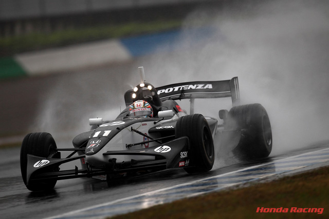 Hondaの各ドライバーはその後も懸命の追い上げを図ろうとしますが、激しい水煙に視界を奪われ、思うようにペースを上げることができません。この結果、小暮選手は4位でフィニッシュ。中嶋選手も7位で完走を果たし、第3戦富士ラウンドに続く今シーズン2度目の入賞を果たしました。塚越選手は8位。伊沢選手は9番手でチェッカーフラッグを受けましたが、60秒のタイム加算により10位となりました。これにともなって武藤選手が9位となり、小林選手は11位完走を果たしました。山本選手はレース終盤にコースへ復帰しましたが、周回数不足のため完走とは認定されませんでした。