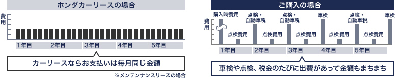 車検や定期点検などクルマのメンテナンスにかかる費用はお客様のご負担になります。