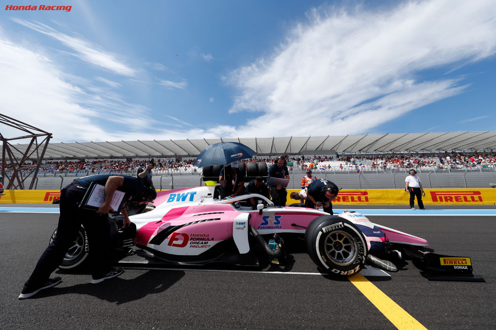 朝から快晴となったポール・リカール・サーキットで、F2シリーズ第5戦のレース2が行われました。気温24℃、路面温度40℃、雲の間から晴れ間がのぞくコンディションとなりました。牧野任祐(RUSSIAN TIME)は9番手でレース1を終えましたが、レース後に上位の選手が失格となり8位に繰り上がり、レース2のポールポジションを獲得。福住仁嶺(BWT Arden)も繰り上がり9位となり、5列目9番手からスタートしました。