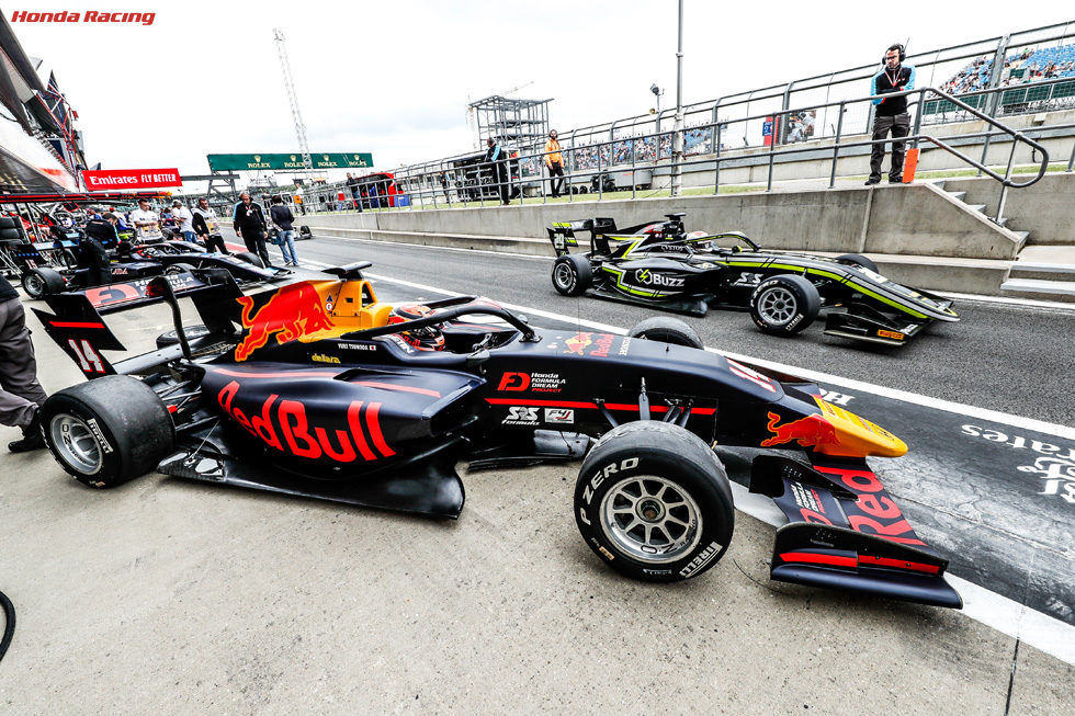 FIA F3選手権第4戦のレース1が午前9時25分にスタートしました。空は厚い雲に覆われ、気温16℃、路面温度23℃で、イギリスらしい肌寒いコンディションです。