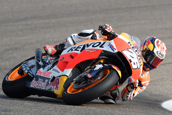 前戦サンマリノGPで今季初優勝を達成したダニ・ペドロサ(Repsol Honda Team)が、トップタイムで初日を終えました。ペドロサの首位発進は今季初です。1回目のセッションで11番手だったペドロサは、2回目のセッションで一気にタイムを短縮、トップに浮上しました。この日は終日、タイヤテストに集中しました。最高気温は26℃でしたが、雲が多いために、路面温度は38度までしか上がりませんでした。今季はこうしたコンディションで苦戦していたペドロサですが、昇り調子をアピールする一日となりました。
