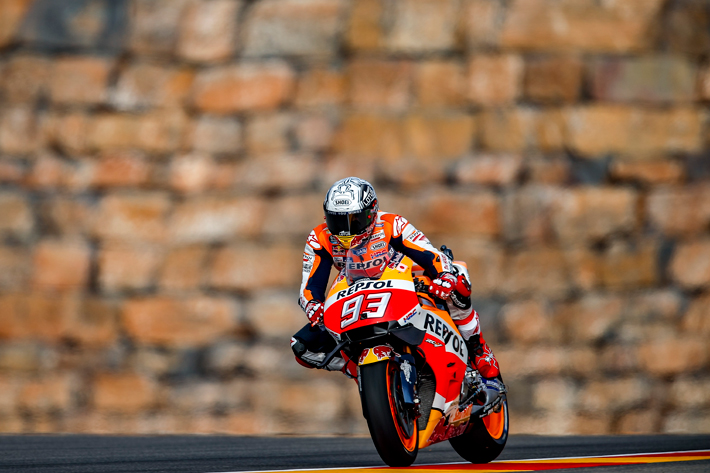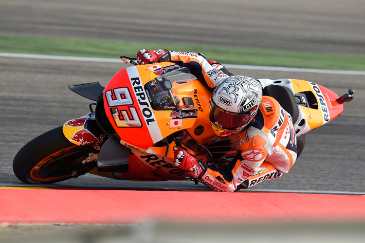 第14戦アラゴンGPのフリー走行は、ところどころ青空が顔をのぞかせるも、雲の多い一日となりました。この季節のアラゴンとしては、気温も路面温度も低い一日となりましたが、Honda勢が好調なスタートを切り、上位を独占しました。