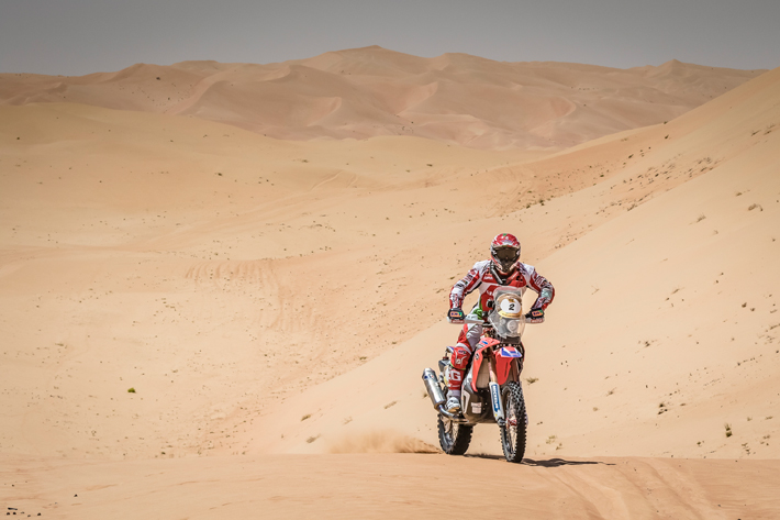 モトクロススタイルでスタートしたアブダビ・デザート・チャレンジの最長ステージ。このスペシャルステージを制したのは、バレダ選手でした。Honda CRF450 RALLYにとって、決して楽な日ではありませんでしたが、バレダ選手は見事なナビゲーションスキルを見せつけ、2位に11分もの差をつけて大勝しました。