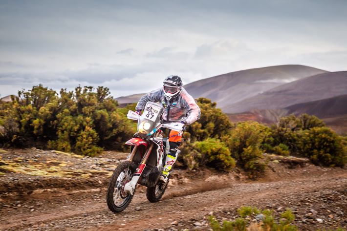327kmに及ぶスペシャルステージ(競技区間)は標高の高いエリアに設定され、スタート地点ですでに4000m、中盤では3500mほどになるものの、後半に入った216km地点は、ダカールラリーの競技区間史上最高点となる4580mまで標高が上がり、ライダーにもマシンにも厳しい環境となりました。また、後半部分には正しいルートを見つけることが難しいパートを設けるなど、ラリーらしい過酷さをみせました。