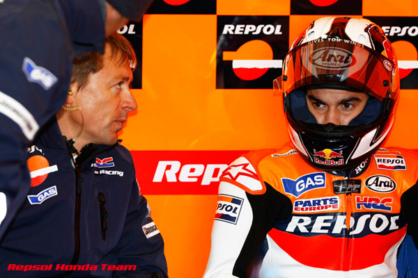 「昨日に引き続き、今日も難しいコンディションだった。アンドレアは、昨日からいろいろなセッティングにトライしているのだが、思うようなレベルに達していない。今日は路面温度が低く、強風のためにセットアップを難しいものにした。明日のウオームアップで再度トライして、少しでも戦闘力を上げたい。ダニは、ケガの回復状態が、まだレースを戦える状態になっていないことを考慮して欠場を決めた。まだ痛みもあり、思うようにバイクをコントロールできず、タイムも出ていない。次のポルトガルGPまでには、かなり回復するはずで、エストリルには元気な走りを見てもらえるようにしたい」