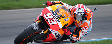 インディアナポリスGPで、2年連続となるPPを獲得したマルケスは、午前のフリー走行では、セットアップに集中して6番手。トップから1秒差以内に10台という接戦の中で、1分32秒後半から33秒台前半のタイムを刻み、アベレージもトップタイムに匹敵するものでした。そして予選の前に行われた4回目のフリー走行では、1分32秒台というすばらしいタイムでラップをこなし、仕上がりのよさをアピール。予選では2度のアタックを決めて、見事、PPを獲得しました。決勝では、開幕10連勝と、クラスをまたいでのインディアナポリスGP4年覇が期待されます。
