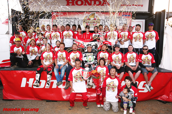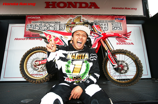 10月21日、宮城県・スポーツランドSUGOで開催された全日本モトクロス選手権第9戦/第50回MFJ-GPモトクロスで、TEAM HRCの成田亮が2012年のIA1チャンピオンを獲得しました。この最終戦までに、2位に45ポイント差をつけて臨んだ成田は、ヒート1を5位でフィニッシュした時点で自身8度目となるタイトルを確定。ヒート2では今季14勝目を挙げ、有終の美を飾りました。今回のチャンピオン獲得は、Hondaにとって2006年以来6年ぶりの栄冠となります。