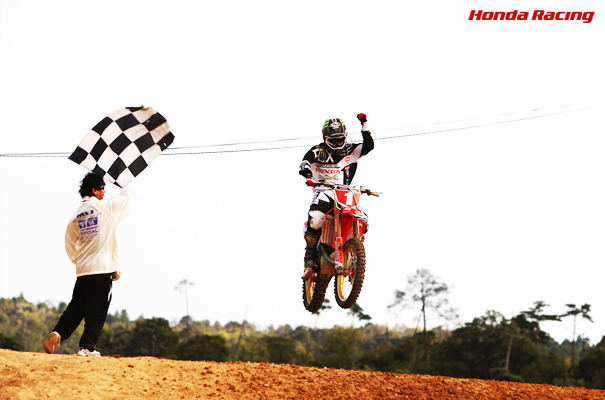 開幕戦から始まった成田とCRF450Rの快進撃は、第2戦川越(オフロードヴィレッジ)、第3戦広島(世羅グリーンパーク弘楽園)と進んでも衰えず、6連勝を達成。成田は広島を特に重要なラウンドと捉えていたので、ここでのパーフェクトウインは非常に価値のあるものでした。