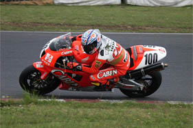 HONDAの玉田誠がスーパーバイク(SB)参戦。玉田はSBK世界選手権SUGO大会2レース目優勝を飾った速さをここでも示そうとしていた。SBのポールポジション(PP)はプロトタイプの梁明。SB玉田はフリー走行トップで注目を集め、予選でも果敢な走りを披露し4番手でフロントローに並ぶ。武田雄一は9番手スタート。総合優勝はプロトタイプの梁、2位加賀山就臣(S)、3位にSBの玉田が入り賞賛を集めた。玉田はSB勢トップで今季初優勝。武田はスタート直前のトラブルでピットスタート、最後尾から追い上げ13位で貴重なポイントをゲット。250は嘉陽哲久(Y)がPP獲得、決勝は赤旗中断の2ヒート制となり小山知良(Y)が優勝。Honda勢トップは5位の青山博一。125は菊池寛幸がPP、決勝は菊池、仲城英幸、藤岡祐三のHonda勢の戦いとなり仲城が今季初優勝。ST600は清成龍一が2勝目を飾った。 |