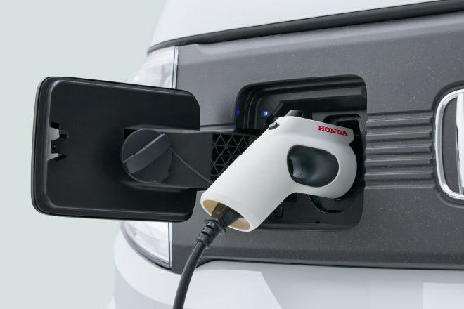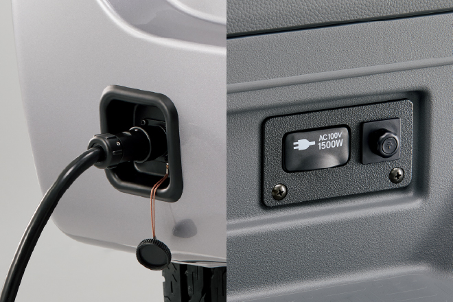 クルマの外側にある給電口から電気をとりだせる。
