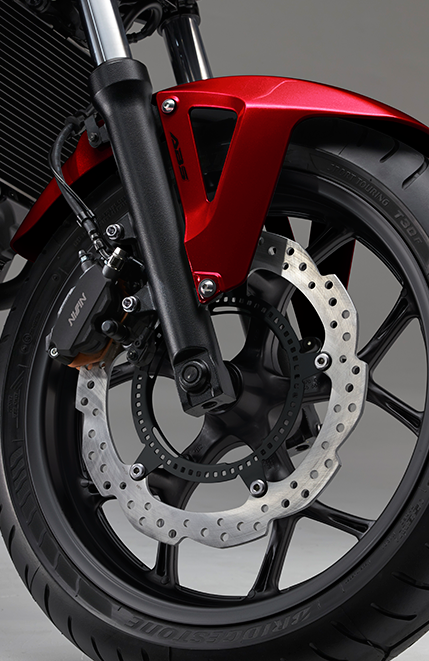※ABSはライダーのブレーキ操作を補助するシステムです。ABSを装備していない車両と同様に、コーナー等の手前では十分な減速が必要であり、無理な運転までは対応できません。ABS作動時は、キックバック(揺り戻し)によってシステム作動を知らせます。