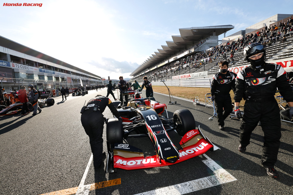 レースウイークを迎えたサーキットは晴れていたものの、冬の富士スピードウェイらしく冷え込みました。20日(日)午前9時55分、公式予選Q1セッションAグループが始まり、#15笹原右京(TEAM MUGEN)が1番手、#65大湯都史樹(TCS NAKAJIMA RACING)が2番手、#5山本尚貴が3番手に続いてQ2へ進出しました。