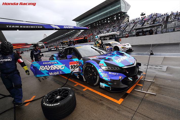 Honda勢の最上位は#100 RAYBRIG NSX CONCEPT-GTでした。4回目のピット作業でエンジンストールによるタイムロスがありましたが、その後7位まで挽回しました。#8 ARTA NSX CONCEPT-GTは9位、#17 KEIHIN NSX CONCEPT-GTは雨脚が強くなった128周目のスプーンコーナー出口でスピンを喫した影響により10位、#64 Epson NSX CONCEPT-GTは11位でチェッカーフラッグを受けました。