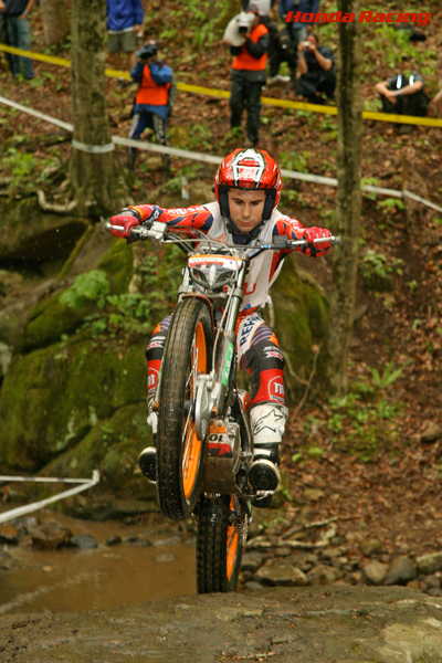 2日目はウエットだった。夜間から降り続いた雨は、ラップ1の途中まで止まなかった。豪雨というほどではなかったが、雨はしとしと降り続いた。土曜日にはドライでグリップもよかったロックセクションはスリッピーになっていた。