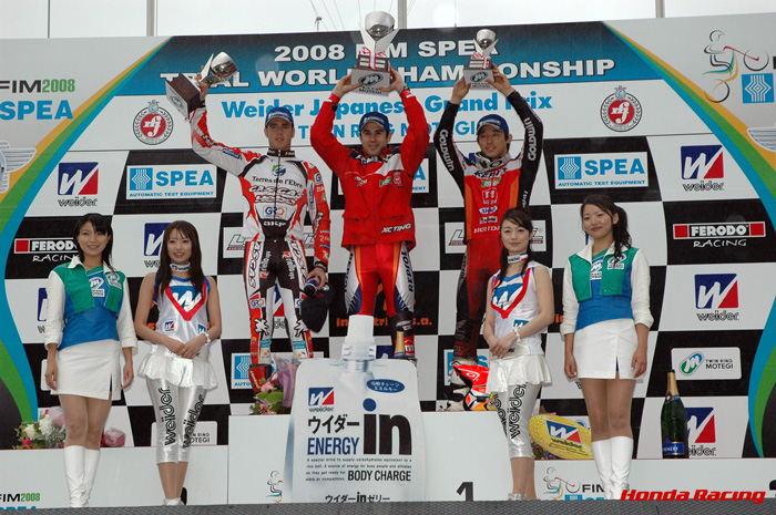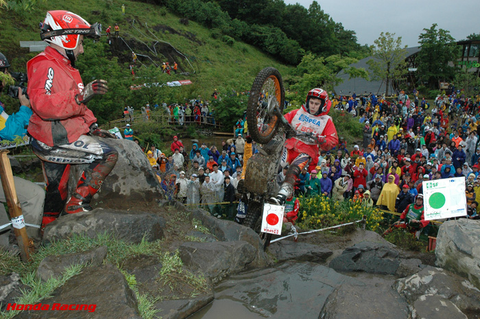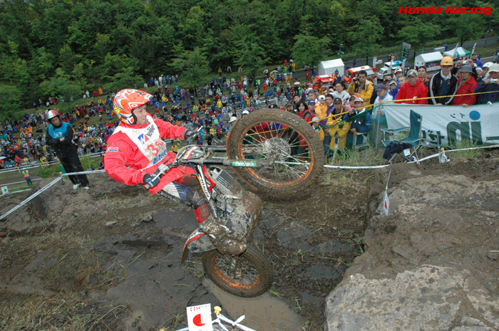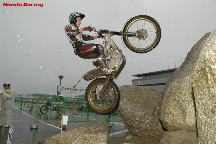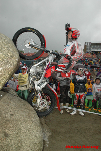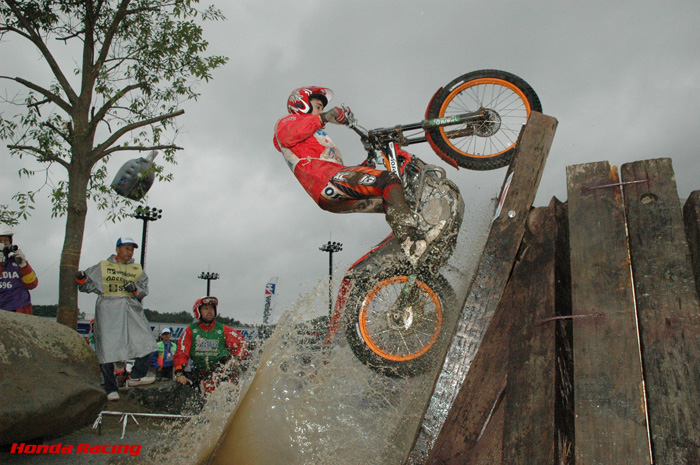 2008年トライアル世界選手権第4戦が、5月31日に栃木県のツインリンクもてぎで開幕。大雨が降る悪天候の中で行われた決勝レース1日目を、現在ランキング1位でMontesa COTA 4RTを駆るトニー・ボウ(REPSOL MONTESA HRC)が、減点71で制した。また、前戦で今季初優勝を遂げたチームメートの藤波貴久は、3位に入賞した。