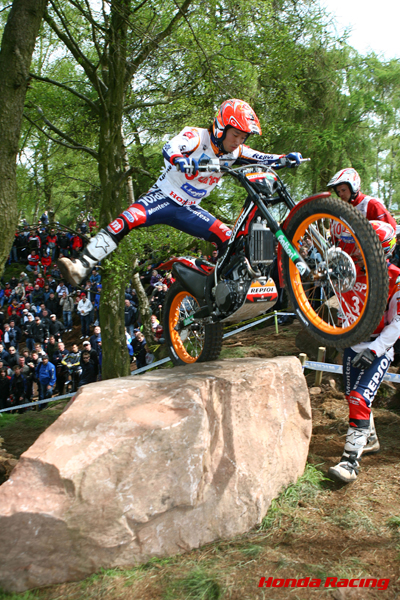 REPSOL MONTESA HONDAのファクトリー製のMontesa COTA 4RTに乗るトニー・ボウは、土曜日と日曜日の2日間にわたって開催された第3戦イギリスGPで、両日ともに勝利。早くも2009年世界選手権のリードを取り始めた。