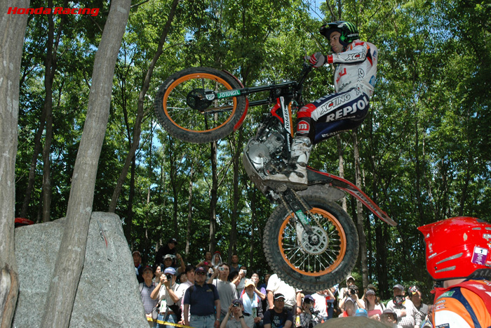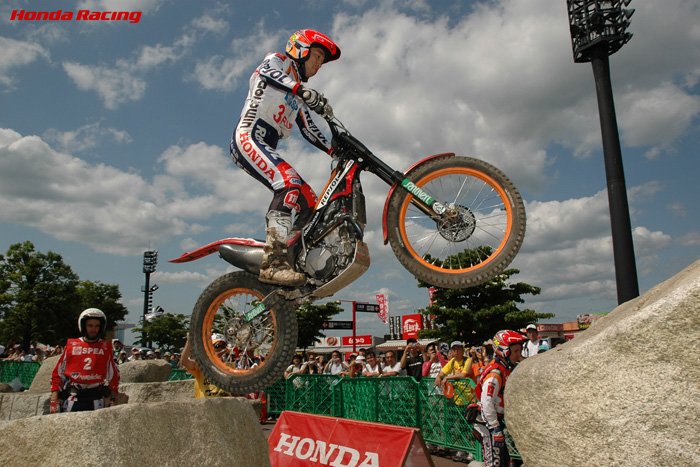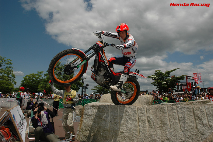トライアル世界選手権シリーズ第4戦ウイダー日本グランプリの2日目が、6月7日に栃木県のツインリンクもてぎで行われ、1日目に引き続き、トニー・ボウ(REPSOL MONTESA HONDA)が優勝。チームメートの藤波貴久も昨日同様、2位に入って表彰台に上がった。