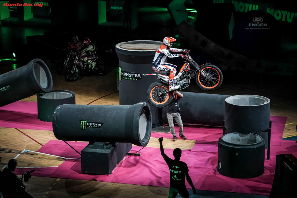 絶対王者トニー・ボウ(Repsol Honda Team)は、2019年に引き続き盤石の強さを発揮しました。参加ライダー8名が走る、「ラウンド1」という言わば予選で、ボウがマークした減点は8点でした。第4セクションでの5点は少しらしくないものでしたが、それでも2番手の減点は8点で、トップスコアで準決勝とも言える「ラウンド2」へ進出しました。ラウンド2は、8名中6名が進みます。