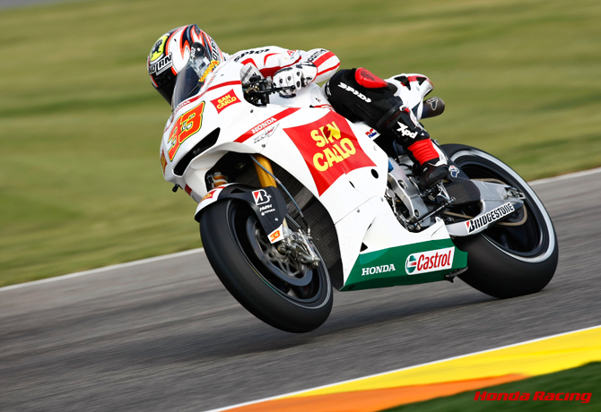 最終戦バレンシアGPのフリー走行は、青空が広がる絶好のコンディションの中で行われ、ホルヘ・ロレンソ(ヤマハ)がトップタイム。以下、1秒差以内に10台という接戦になり、マルコ・シモンチェリ(Team San Carlo Honda Gresini)が4番手、アンドレア・ドヴィツィオーゾ(Repsol Honda Team)5番手、ランディ・デ・ピュニエ(LCR Honda MotoGP)7番手、マルコ・メランドリ(Team San Carlo Honda Gresini)8番手と、トップ10に4台のHonda勢が名前を連ねた。また、ケガから復帰して2戦目となるダニ・ペドロサ(Repsol Honda Team)は12番手。青山博一(Interwetten Honda MotoGP)は14番手という結果だった。