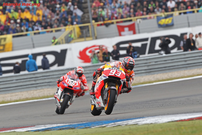 マルケスは、ウエットコンディションで積極的にペースを上げました。その後、6周を終えてスリックタイヤのマシンに乗り換えた7周目にオーバーランを喫し、トップの座をアンドレア・ドヴィツィオーゾ(ドゥカティ)に譲ります。しかし、遅れた分を着実に取り戻し、16周目にトップの座を奪い返すと、26周のレースで真っ先にチェッカーを受けました。これで開幕から8連勝を記録。8連勝の史上最年少記録を更新し、その達成は、ジャコモ・アゴスチーニ、マイク・ヘイルウッド、ジョン・サーティス、ミック・ドゥーハンに続き5人目となりました。