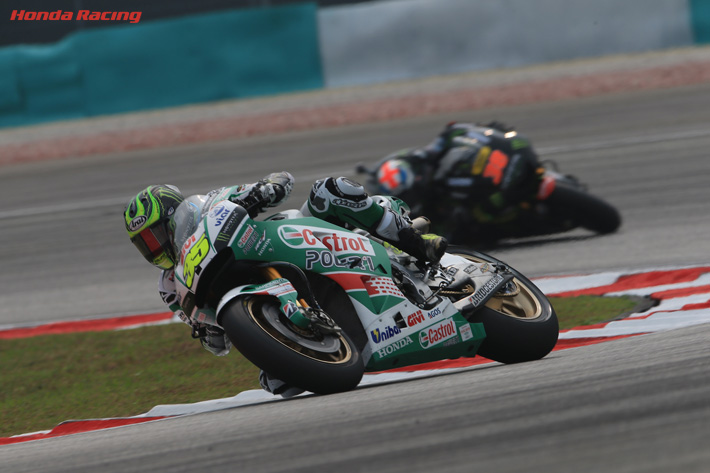 3連戦最後のレースとなった第17戦マレーシアGPは、フリー走行、予選と好調だったダニ・ペドロサ(Repsol Honda Team)が、その走りを決勝で見事に再現し、今季2勝目を挙げました。ホールショットを奪ったペドロサは、序盤はチームメートで2番手スタートのマルク・マルケスや、ホルヘ・ロレンソ(ヤマハ)、バレンティーノ・ロッシ(ヤマハ)とトップグループを形成しました。中盤にはロレンソとの一騎打ちとなりますが、後半は引き離して独走となりました。