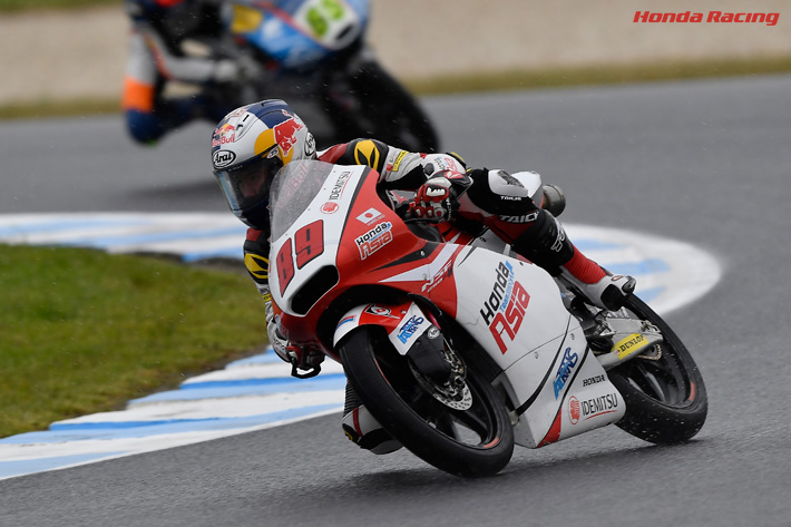 総合2位のエネア・バスティアニーニ(Gresini Racing Moto3)は16番手、ウエットコンディションを得意とするカイルール・イダム・パウィ(HONDA TEAM ASIA)は初サーキットながら19番手、総合3位のホルヘ・ナバロ(Estrella Galicia 0,0)が20番手、尾野弘樹(HONDA TEAM ASIA)は初コースで25番手でしたが、コンディションが悪化した午後の走行では9番手と徐々にコースを攻略しているだけに、2日目のポジションアップが期待されます。