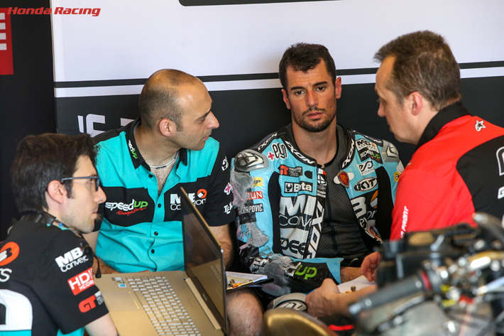 2番手につけたのは、開幕3連勝を目指すモルビデリで、1回目、2回目のセッションともに2番手と、順調なスタートを切りました。トップタイムは、MotoGPクラスで昨年優勝したマルク・マルケスの弟であるマルケスに譲りましたが、アベレージではマルケスとともに安定したラップタイムを刻み、今大会もチームメート同士による優勝争いが期待されます。