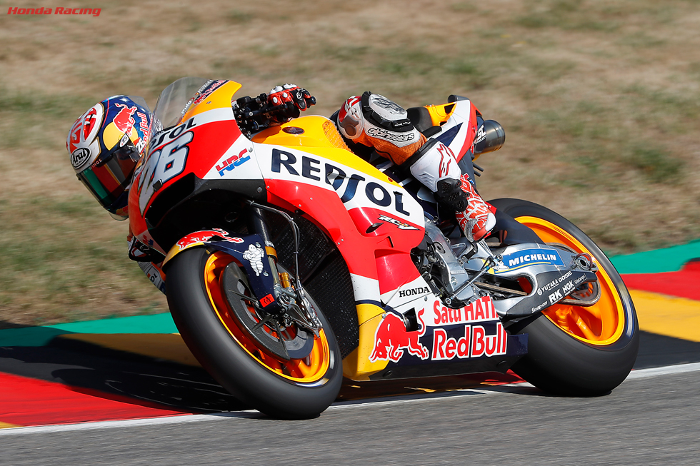 初日、フロントのフィーリングが決まらず20番手と出遅れたダニ・ペドロサ(Repsol Honda Team)が、2日目のフリー走行で10番手に浮上。大接戦の予選でも10番グリッドを獲得しました。ペドロサにとっては納得のいくグリッドではありませんが、過去6勝しているザクセンリンクで今季ベストを狙います。