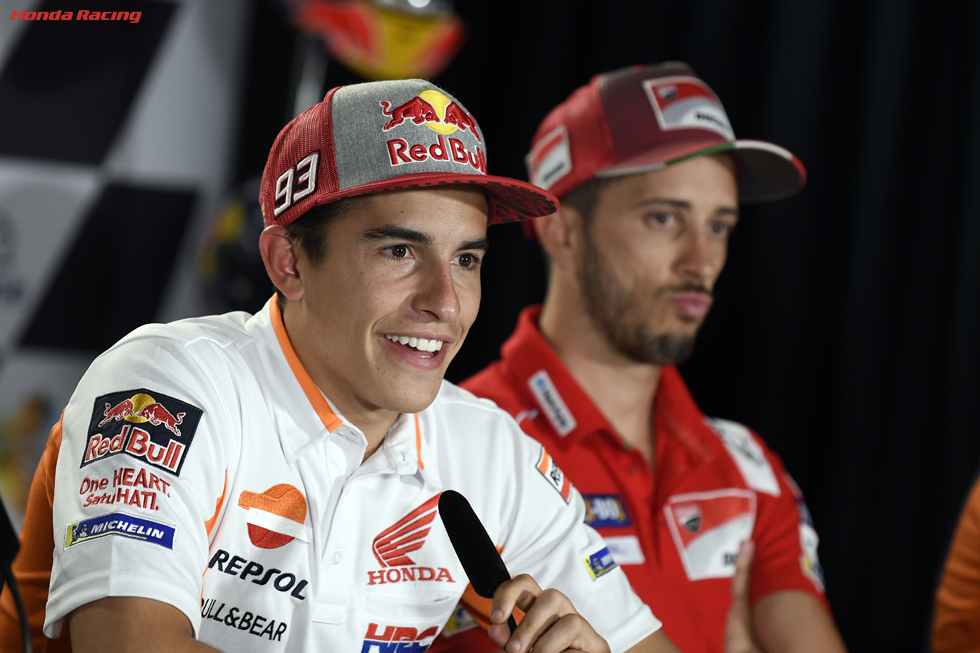 午前中のフリー走行で4番手につけたマルケスは、今大会もセッションを通して1セットのタイヤで走り続けました。そのため、走り出して6周目がこの日のベストタイムとなりましたが、それ以降もベストタイムに匹敵する1分24秒から25秒台で周回を重ねました。マルケスより速いタイムを出した上位3選手は、セッション終盤にニュータイヤを装着してタイムを更新しているだけに、4番手タイムでも内容ではトップグループに匹敵、もしくはそれを上回る内容で初日を終えています。